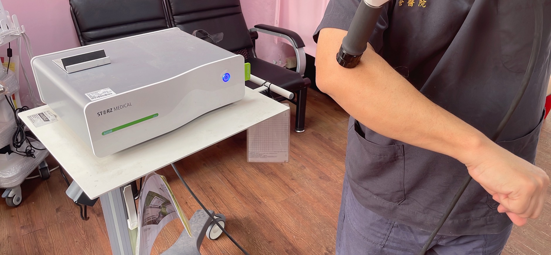 面對這群「卡關」的病友,倪昊白醫師祭出了復健科的黑科技——「體外震波治療 (ESWT)」。這項治療不需要動刀、也不用打針,對於怕痛或擔心手術風險的長輩來說,簡直是救星。