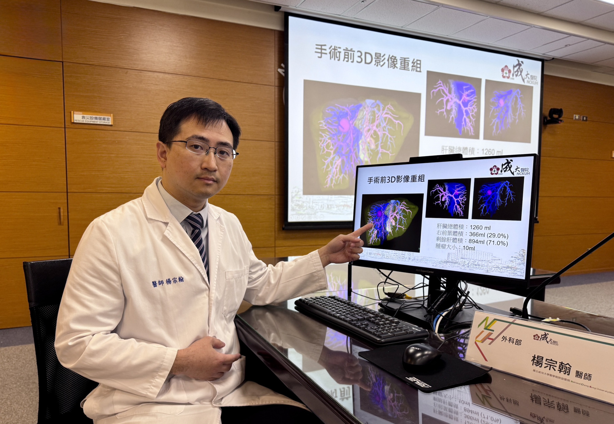 圖:成大醫院一般外科暨移植外科楊宗翰醫師:3D影像重組結合ICG螢光導航 精準肝臟手術提升肝癌根治成效(記者田進山攝)