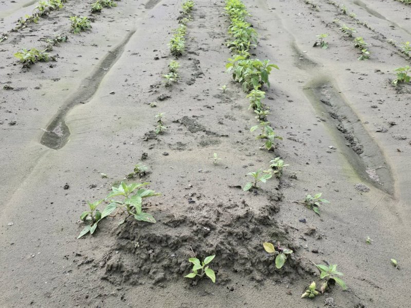 圖:胡麻幼苗遇雨生長參差不齊(記者王榮輝攝)