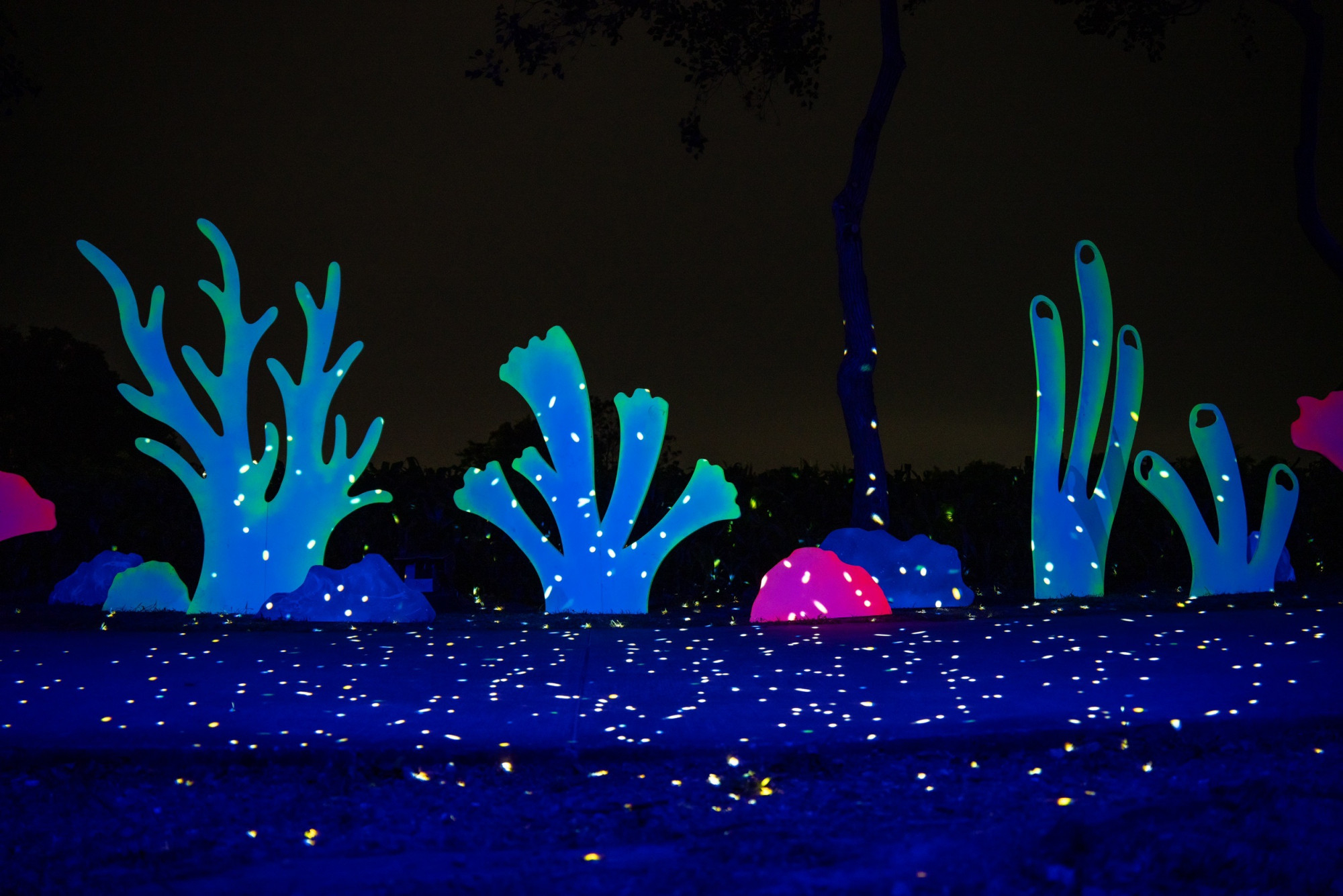 文化局代理局長林韋旭說明,今年策展扣合主題「光的年輪」,呈現累積15年來的感動與創作深度。亮點作品包括位於藝術燈區的主燈《無盡光輪》,由知名藝術團隊「UxU Design 有用主張」創作;另有水幕投影作品《光的年輪》由黑川互動媒體藝術操刀;而禹禹藝術工作室的作品《光聚》、先驗物件的《花火城邦》、日本藝術家森岡厚次《又一個月圓》……等。與以往不同的是,今年新闢公19口袋公園,依現地自然環境設置4件植物意象的《榮光幻花》作品,以臺灣常見的姑婆芋、蕉葉、蒲公英、野花造型,利用金屬轉譯,以巨型花朵雕塑與光環境打造一座童話般的夢幻花園。