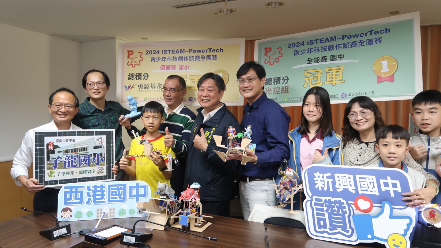臺南科技教育再創佳績!由國立臺灣師範大學舉辦的「2024 iSTEAM PowerTech青少年科技創作競賽全國賽」日前落幕,全國共有328支隊伍、超過1,600名選手同場競技,臺南市西港國中「科技創作2隊」、子龍國小「子龍機械團」雙獲偏鄉賽國中、國小組冠軍;新興國中「新興星光A」則榮獲全能賽國中組總積分冠軍,另有多所學校在單項競賽中表現亮眼,展現臺南深耕科技教育的厚實成果。