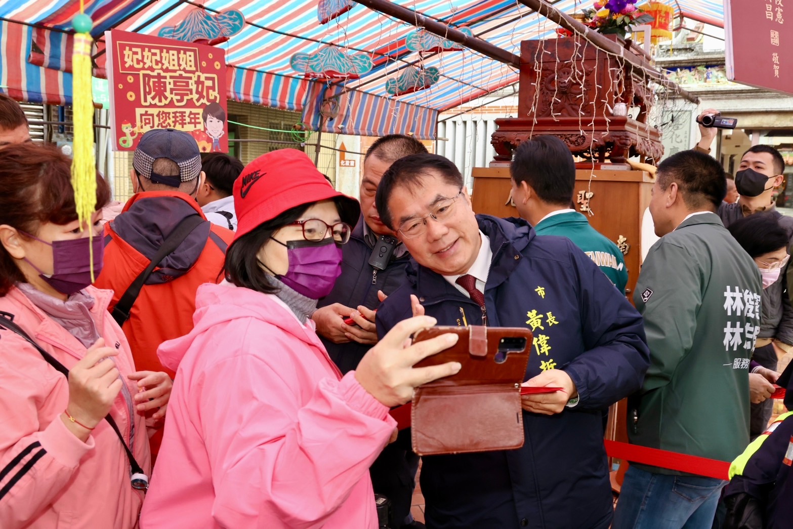 臺南市長黃偉哲於1月31日上午前往善化慶安宮參拜,並發放新春紅包,與市民共度佳節。