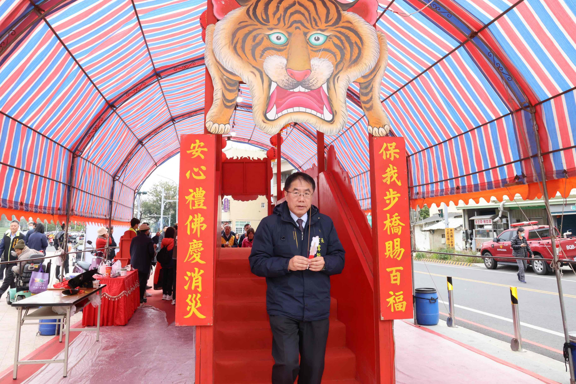 臺南市長黃偉哲於2月4日出席宣傳記者會,與鹽水武廟管理人及地方民意代表共同祈求活動順利。
