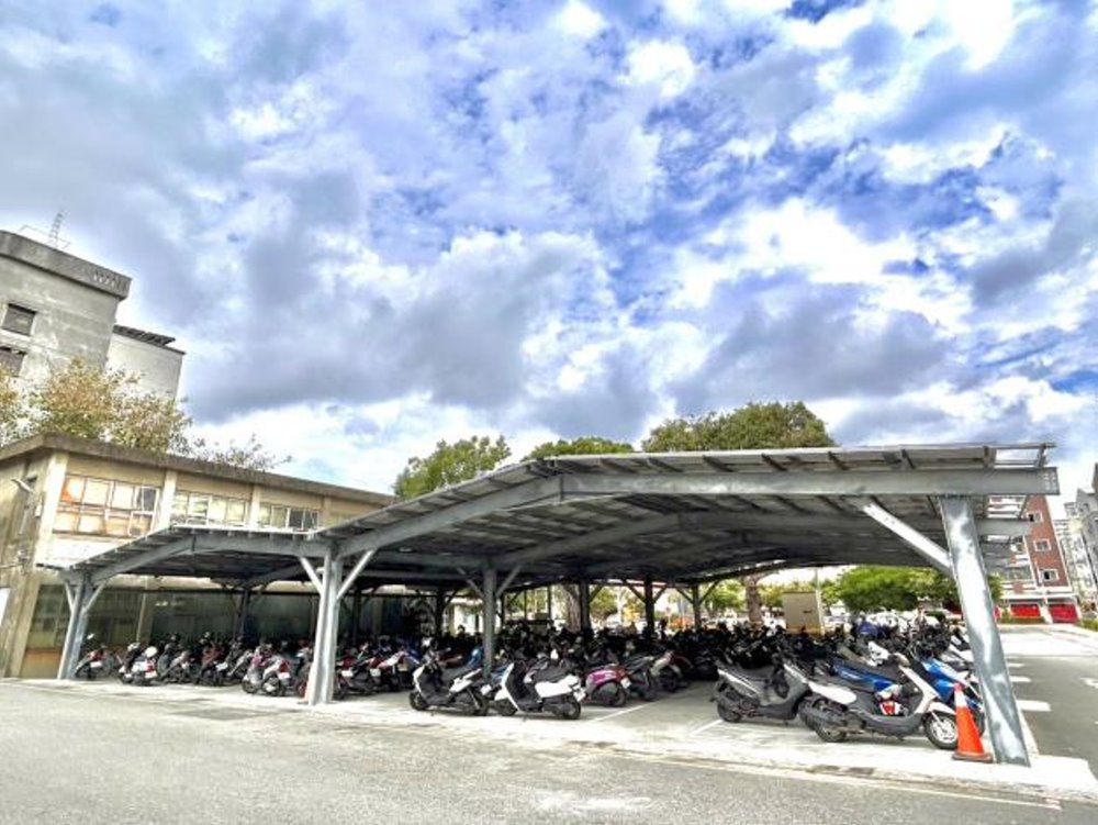 秘書處表示,這次更新採取「市府提供場地、廠商出資建置」的雙贏模式,市府不需支付建置費用,即可擁有嶄新的光電機車棚。今(114)年2月底,廠商已完成整體硬體結構與地坪整修作業,並順利裝設完成總容量達95.095kW的太陽能光電系統,同時劃設203個機車停車格,現已全面開放同仁停放使用。不僅如此,本案亦兼具財政效益,依照合約,廠商每年將回饋本府躉售電價收入的5%,預估每年可為市庫挹注綠能收益,在打造低碳城市的同時,也為市政發展注入實質助力。