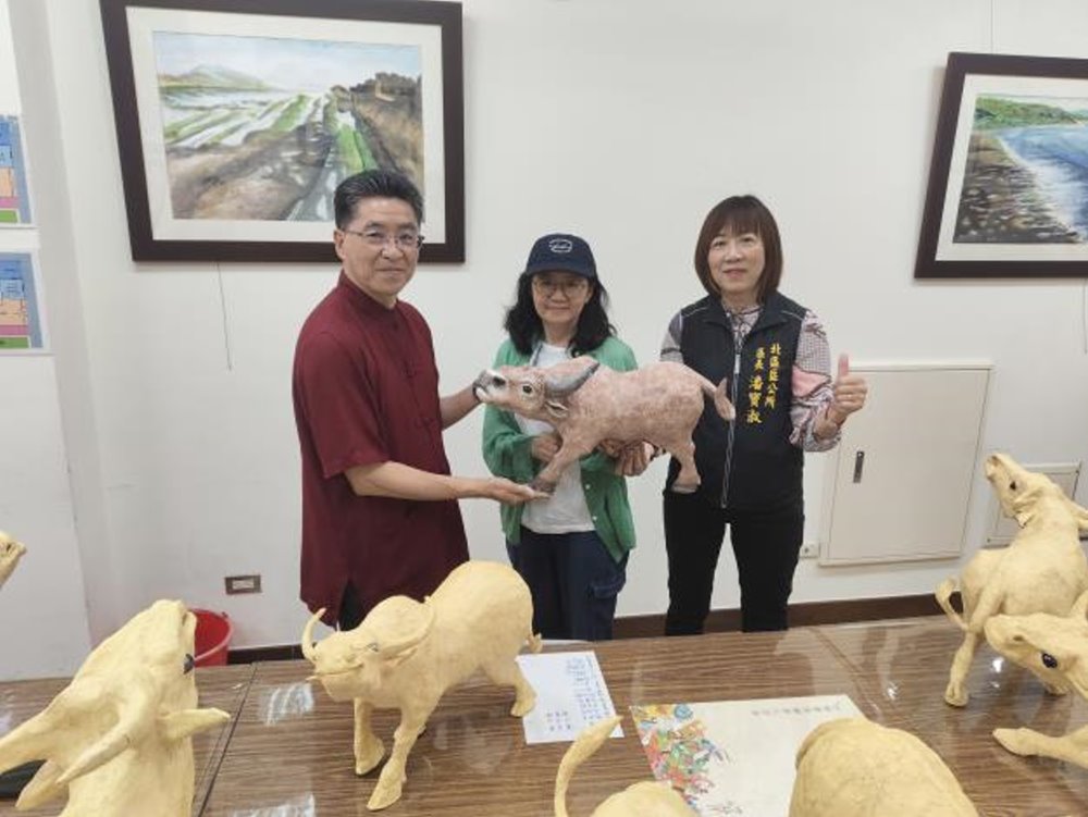 每期必報名糊紙課程的劉慧卿女士說,除了課堂上的學習,回家後利用休假日繼續製作,希望能呈現台灣牛堅毅的生命力。感謝北區區公所及開基玉皇宮於鎮北學堂開設課程,吳文進老師悉心無私的教導。