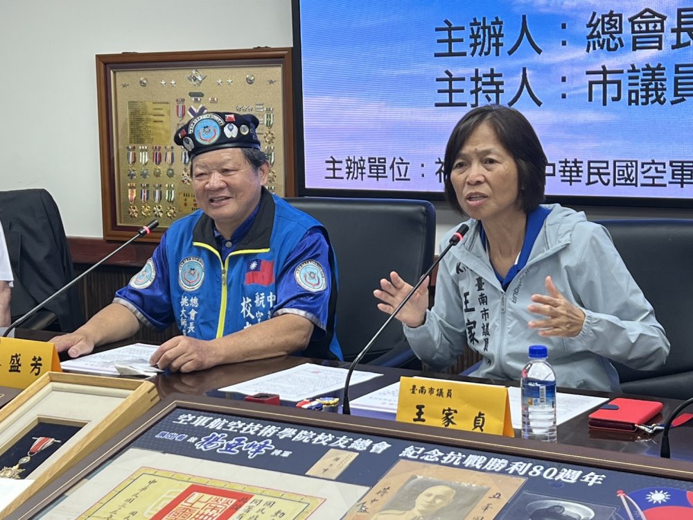【記者田進山/台南報導】空軍航空技術學院校友總會,紀念抗戰勝利80週年,執行國軍退除役官兵輔導員會計畫,主辦勳獎章交流展,(今)假臺南市議會召開記者會,邀請市議員王家貞、林美燕蒞臨指導見證,承先啟後,綻放勝利光芒。