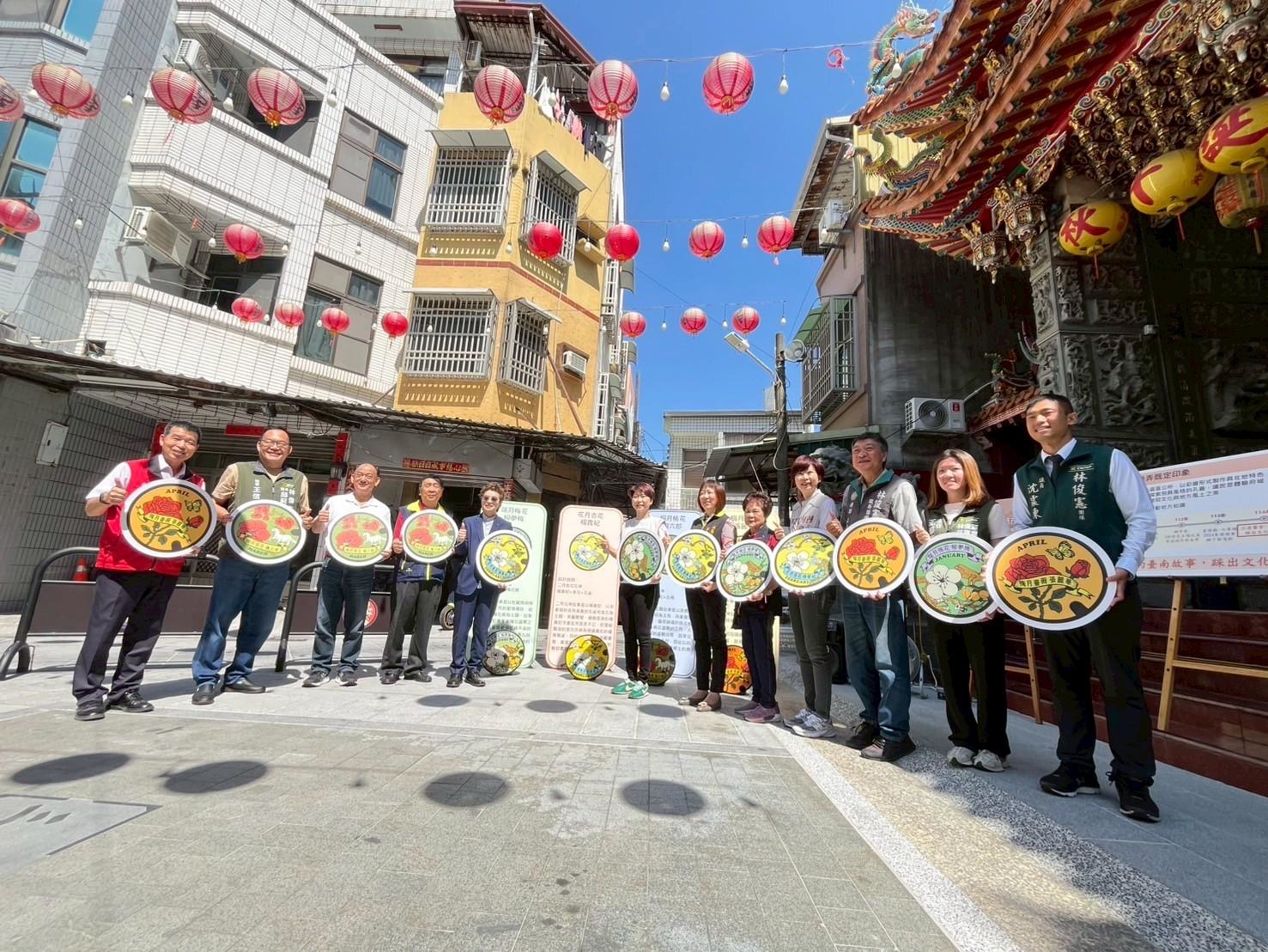 臺南市政府水利局與北區區公所攜手合作,推出以「三老爺宮-十二花神」為主題的特色污水孔蓋,今(15)日由趙卿惠副市長主持啟用活動,立委、議員、區長及里長里民共襄盛舉,現場熱鬧非凡。