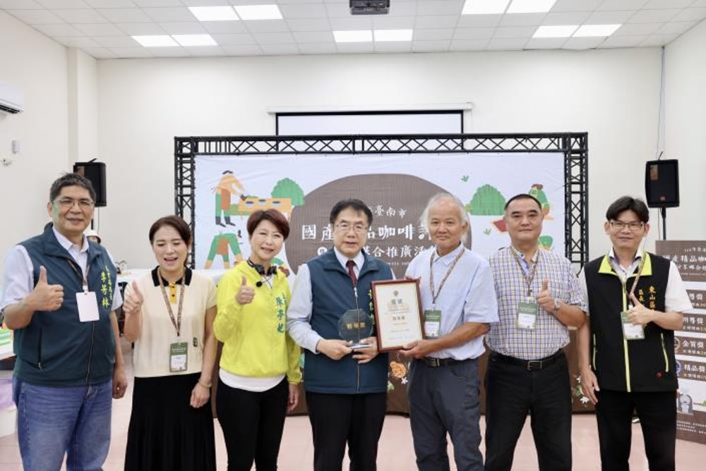 【記者田進山/台南報導】台南東山區農會於今(18)日舉辦「台南市國產精品咖啡生豆推廣分享媒合會」,台南市長黃偉哲親自出席活動,除頒獎祝賀得獎莊園主外,並和與會貴賓一起製作使用台南精品咖啡豆沖煮的西西里特調咖啡,盼消費者一起支持在地咖啡文化,也將致力讓台南咖啡邁向國際舞台。立法委員陳亭妃,以及立法委員林俊憲、賴惠員等辦公室代表也到場共襄盛舉。