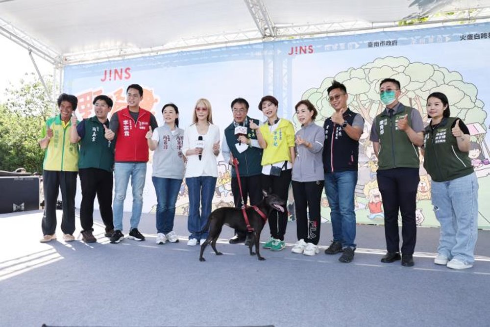 【記者廖啓舟/台南報導】台南市今(18)日下午,於安平寵物運動公園熱鬧舉辦《野餐我PET你 滾草皮音樂市集》,由關注動物平權的日本眼鏡品牌 JINS 主辦,結合飼主與寵物互動體驗、音樂表演與野餐市集三大元素,打造南台灣最大規模的毛孩音樂盛會。台南市長黃偉哲也驚喜現身,親自帶著人氣愛犬「黑妞」一起參與市集活動,展現對動物友善的高度重視。