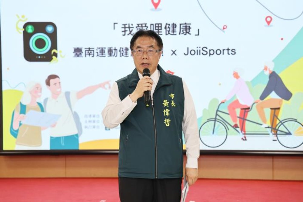 黃偉哲首先感謝市民踴躍參與「運動健康護照」計畫,這項計畫去年首度推出即深獲好評,今年推出升級版,並與 JoiiSports 平台合作,鼓勵市民透過日常運動累積點數換取小獎勵,逐步養成規律運動習慣。