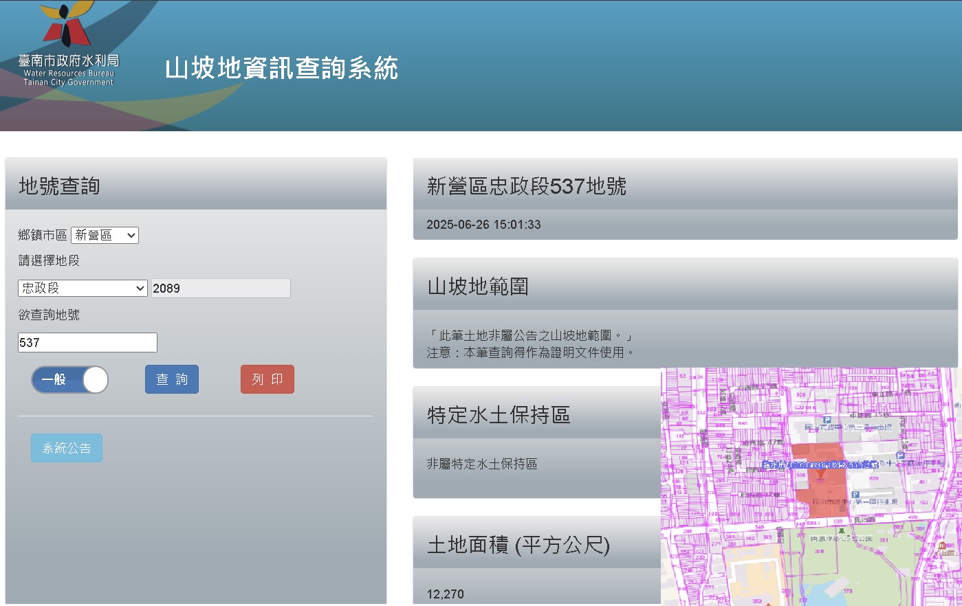 臺南市山坡地資訊查詢系統2.0版 便民重大更新上線