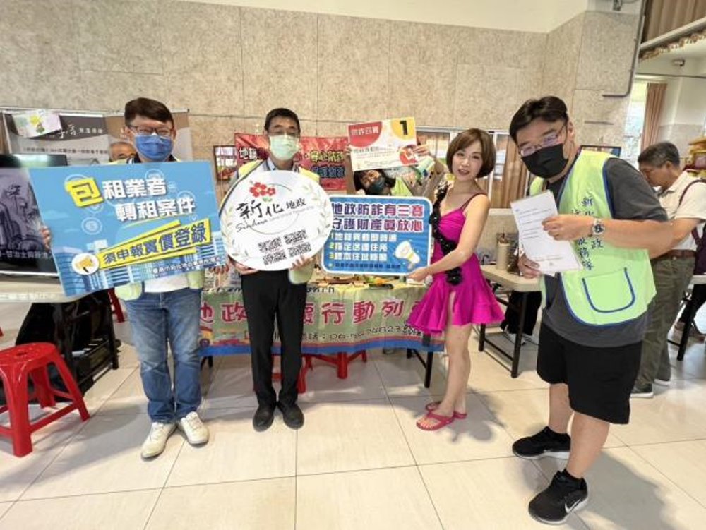 圖:新化地政事務所結合轄區內新市白蓮霧節─「閃耀綠寶石傳說」產業文化活動設攤宣導(記者黃石泉攝)