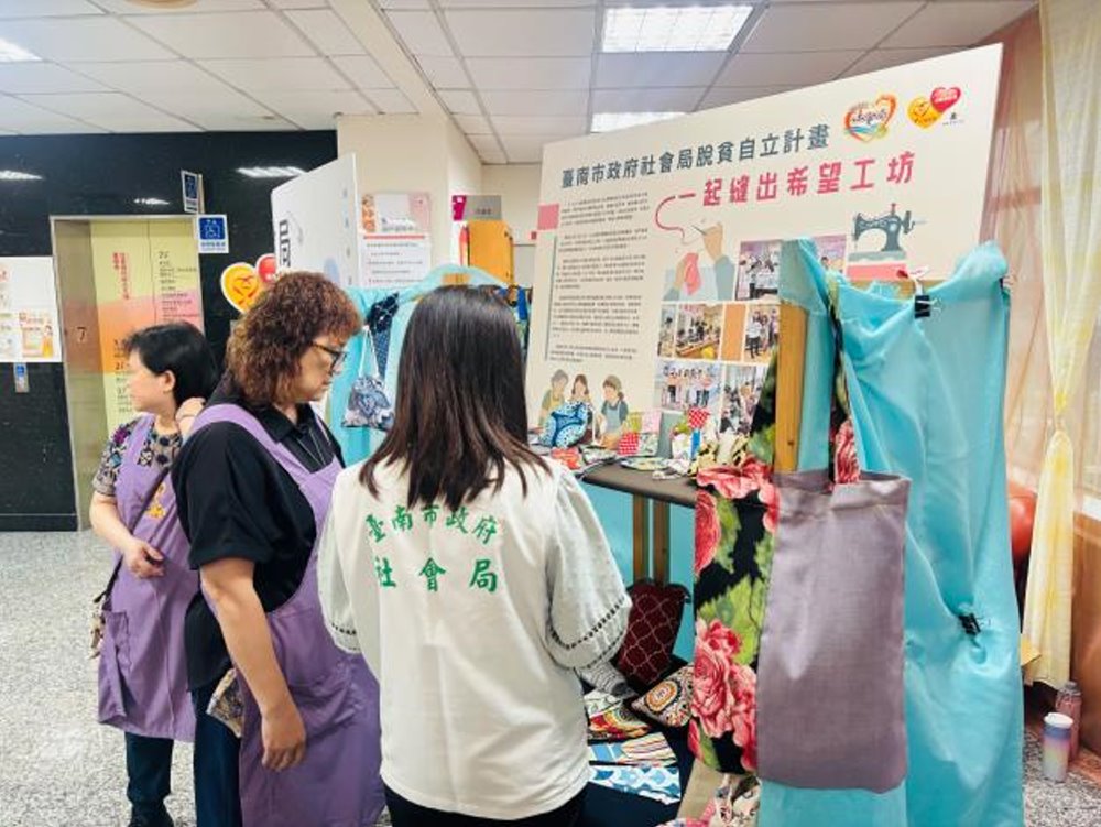 【記者黃石泉/台南報導】台南市積極推展各項脫離貧窮社會投資措施,且正視培力重要性,其中包含社區產業合作方案,於去(113)年與社會企業多加思所合作開辦「一起縫出希望工坊」,今年114年續開辦為期3個月縫紉手作課程,培訓共8名縫紉師,作品成果於今(9)日「好好市集」首場正式亮相,現場共9個攤位都是各創作者的成果心血,後續縫紉師將由社會局輔導團陪伴輔導創業,並走入2間日照機構、2處偏遠地區校園進行義縫活動,免費幫弱勢修補衣物,預計將有100人受惠,未來於社福大樓每月將定期舉辦「好好市集」,社會局也將持續輔導更多弱勢家庭有工作能力未就業者,發掘自身就業性向與能力,期以未來能藉此提升工作能力及機會,改善家庭經濟。