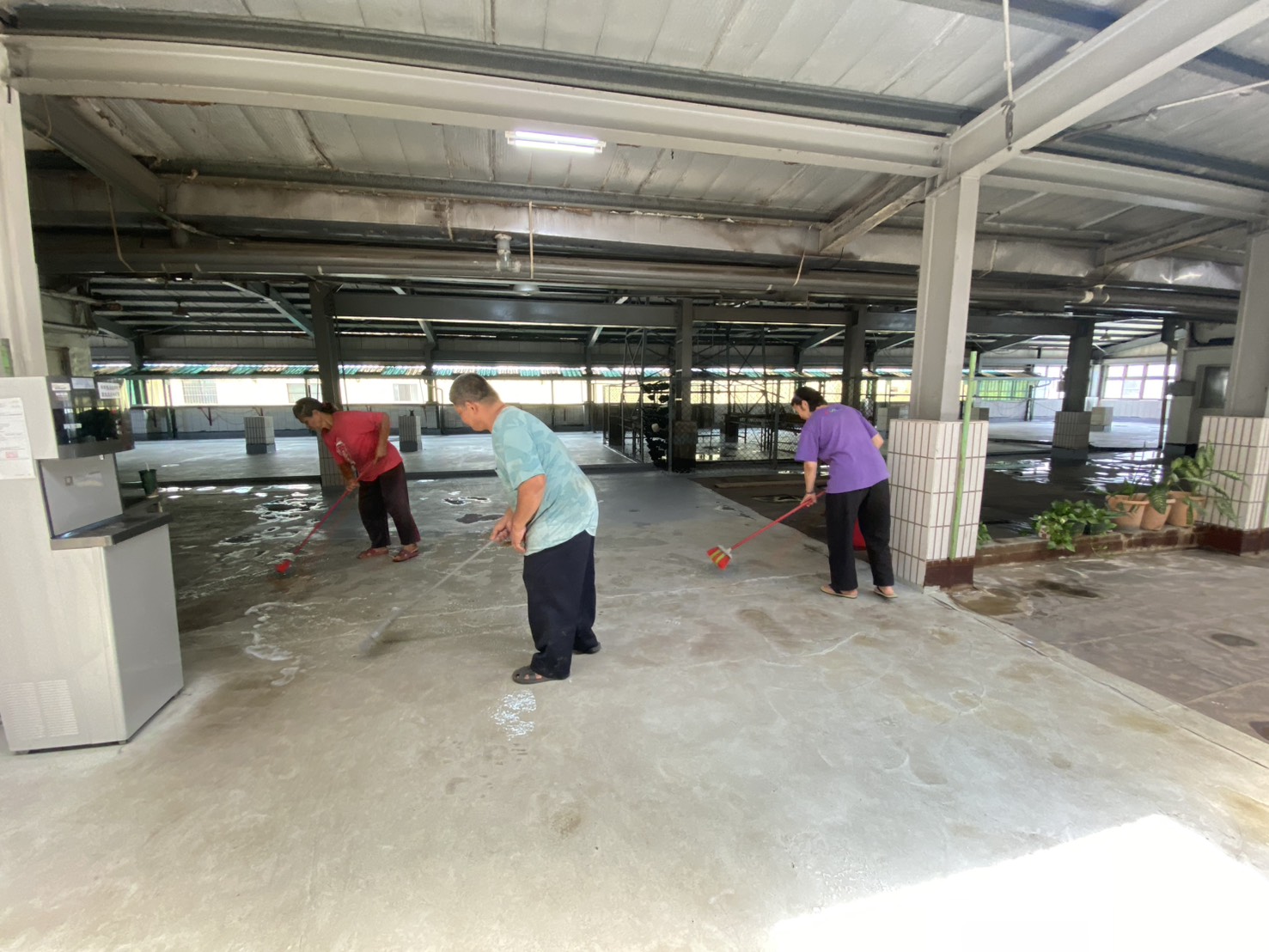 為強化各市場防災機制,提升整體設施的防護能力與應變效率,公部門與自治會攤商朋友於颱風前做好防颱準備,並降低災害發生,於颱風過後立即投入災後處理與協助攤商復原工作,市府全力優先處理受損建物,於最短時間內完成各項修繕,保障攤商與民眾採買安全。