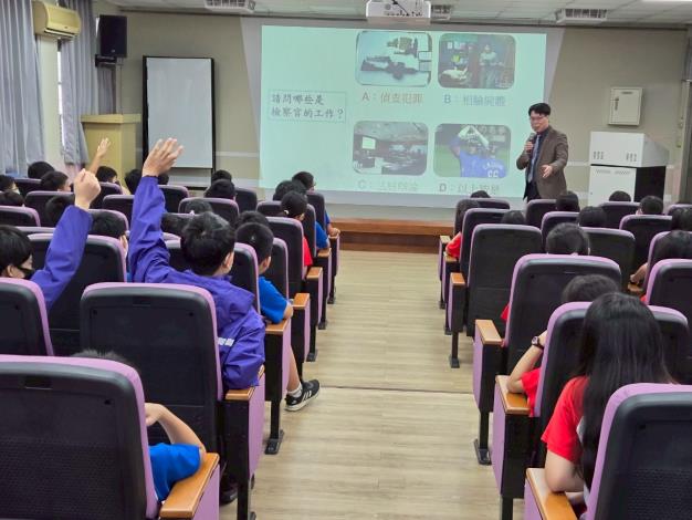 教育局局長鄭新輝指出,現行國中課綱融入法律與公民素養的內容,這次特別與地檢署攜手,由王主任檢察官以活潑的說故事、講時事方式,讓同學發現法律條文不再是冷冰冰的,而是可以成為守護大家的好朋友;也期許所有同學,把今天聽到的「誠信與廉潔」觀念帶回家,變成行動力,成為守法、守信的公民。