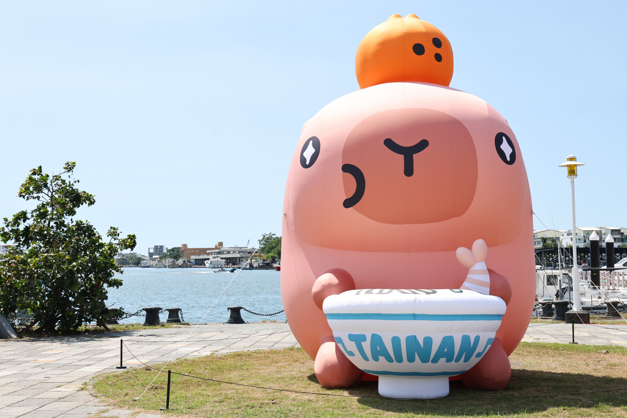 卡比胖拉水上巨偶亮相台南 安平觀光添新亮點
