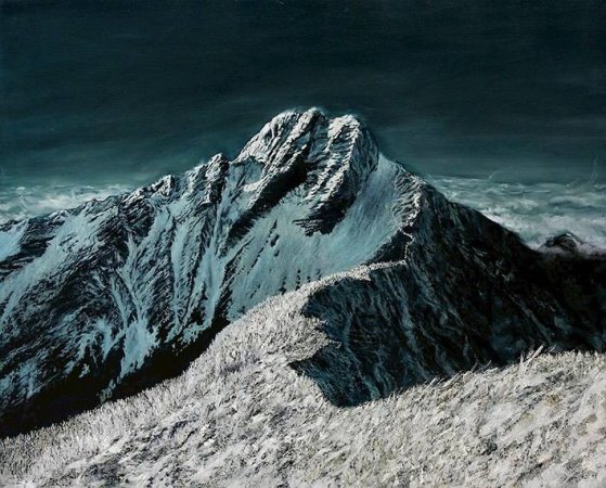 洪俊銘的風景畫展現「山岩」的氣息和藍天、白雲、天地的廣濶。以油畫為主要創作媒材的他,筆觸樸質厚實,蘊含堅定與沉穩的力量。他在構圖間留下線索,這些線索同一個個未說完的事件——邀請觀者將自身的記憶與感受投射進來。畫面展現出筆的舞與力度,也保留了完整的沉思的空間,如同岩石與水的共存,既守護也包容。在真摯的風景裡,情感真誠留駐。它們靜靜停泊——停泊在一抹晨光、一片霧氣、一張遠去的背影之中。