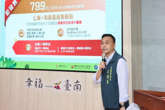 交通局長王銘德說明,這次推出的「大台南公車+南嘉臺鐵無限搭」定期票方案定價799元,以既有的MeNGO平台發行,服務範圍涵蓋包含臺南境內公車、YouBike外,更納入台南、嘉義沿線的台鐵23個車站,北起嘉義大林站、南至台南中洲站、沙崙支線,適用範圍超過80公里。