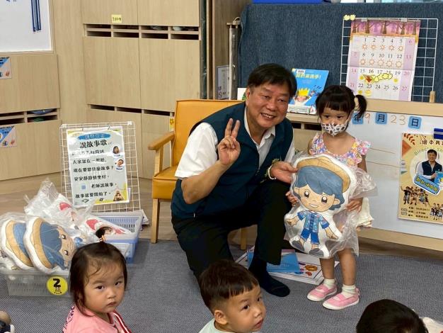 圖:教育局長鄭新輝前往北區立人國小附設幼兒園與幼幼班小朋友共讀繪本(記者陳岑博攝)
