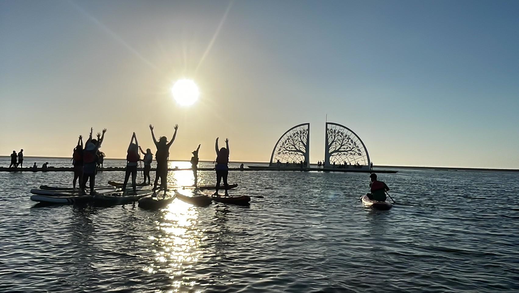 【特派員侯翠玲/台南報導】將軍區公所27日舉辦「舟遊北航道獨木舟」及「扇形鹽田SUP瑜珈」體驗活動,參與者在專業教練帶領下,在北航道生態水域划舟、在扇形鹽田夕陽下靜心伸展,感受將軍區獨特的海洋風貌。