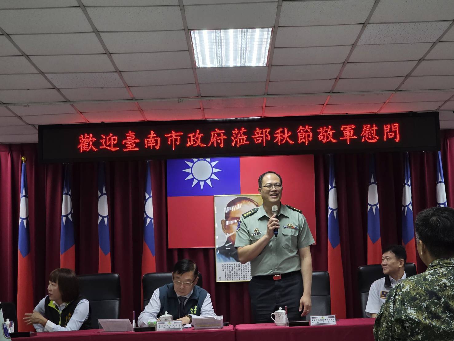 民政局局長姜淋煌強調,國軍長期守護國土、維護社會安定,讓市民得以安居樂業。並承諾市府將持續與國軍緊密合作,攜手提升防災能量與應變能力,共同守護臺南這片土地。最後,祝福官兵中秋佳節快樂、平安健康、軍旅順遂。
