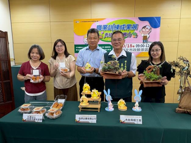 在今(2)日記者會現場由訓練單位展現學員訓練成品,大台南總工會沈暄晨秘書長表示開辦中國繩結的訓練課程,學員由不會到能獨立完成作品,職訓成果展將結合義賣,義賣所得全數捐贈予台南市勞工志願服務協會,用於協助弱勢族群改善居住環境;另外規劃「瓦上微景」的手作體驗,將傳統磚瓦結合綠意植栽,創造出獨具特色的微型景觀;另外社團法人台南市觀光協會范秀珠總幹事規劃時下最夯的「奶油烤年糕」,將熟悉的年糕融入西式烘焙手法,打造外酥內Q、香氣四溢的全新口感;伽碩企業有限公司執行長郭明洽規劃「浮游花瓶」體驗,將永生花與乾燥花放入玻璃瓶中,注入礦物油,讓花材宛如漂浮於瓶中,保留最美好的瞬間;成果展現場提供各20個免費手作名額,大家要趕快手刀線上報名。