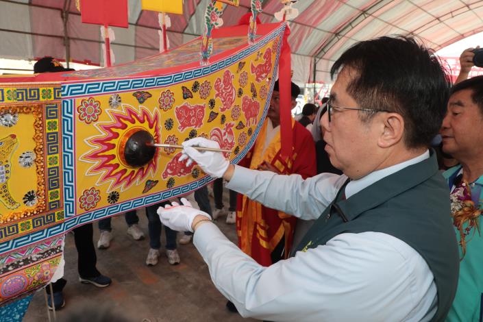 台南市長黃偉哲為喜樹萬皇宮龜醮仙舟開光 感謝用心傳承民俗