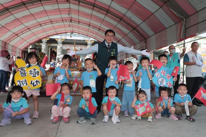 【記者黃石泉/台南報導】台南喜樹萬皇宮今(15)日於萬皇宮大廟前舉行龜醮民俗文化季-龜醮祭典法會系列活動,流傳百年特色傳統民俗「龜醮」傳承至今,已成喜樹在地民俗特色,台南市長黃偉哲今日特別到場為龜醮仙舟開光,並感謝在地居民傳承民俗的用心。市議員林依婷、周麗津,以及立委林俊憲、陳亭妃服務處代表、各議員服務處代表和喜樹國小附設幼兒園多位學童也到場觀禮。