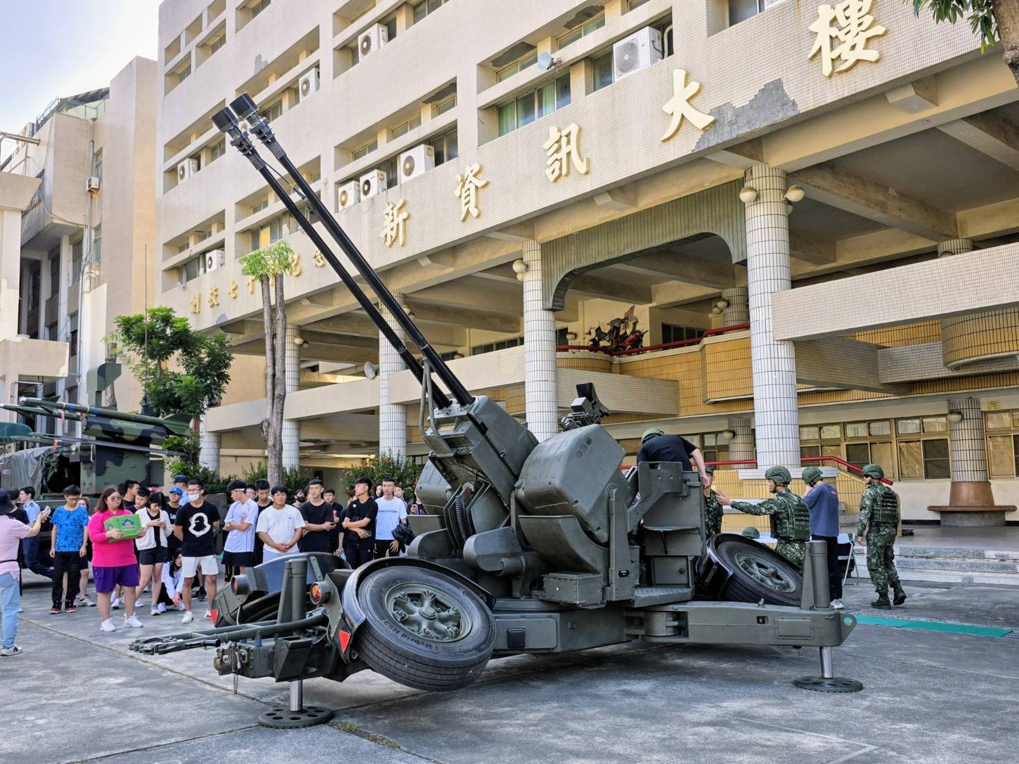 另外,利用校慶活動校園中也由空軍防空飛彈七九四旅展出三五快砲、車載劍一防空飛彈,讓全校師生及來賓大開眼界藉此機會讓師生近距離觀察這些裝置,並聆聽專家的詳細解說,增進了對於現代軍事科技的興趣和認識,也促進學生對國防意識的提升,培養他們對科學與技術熱愛的良機。期望透過這樣的學習與交流,能激發同學們的探索精神,並增強他們對國家安全的責任感。除此之外並邀請南區國軍人才招募中心及空軍防空暨飛彈指揮部等單位蒞校設置全民國防攤位及趣味遊戲提供同學遊憩,介紹軍中環境資源以及軍旅生涯的發展