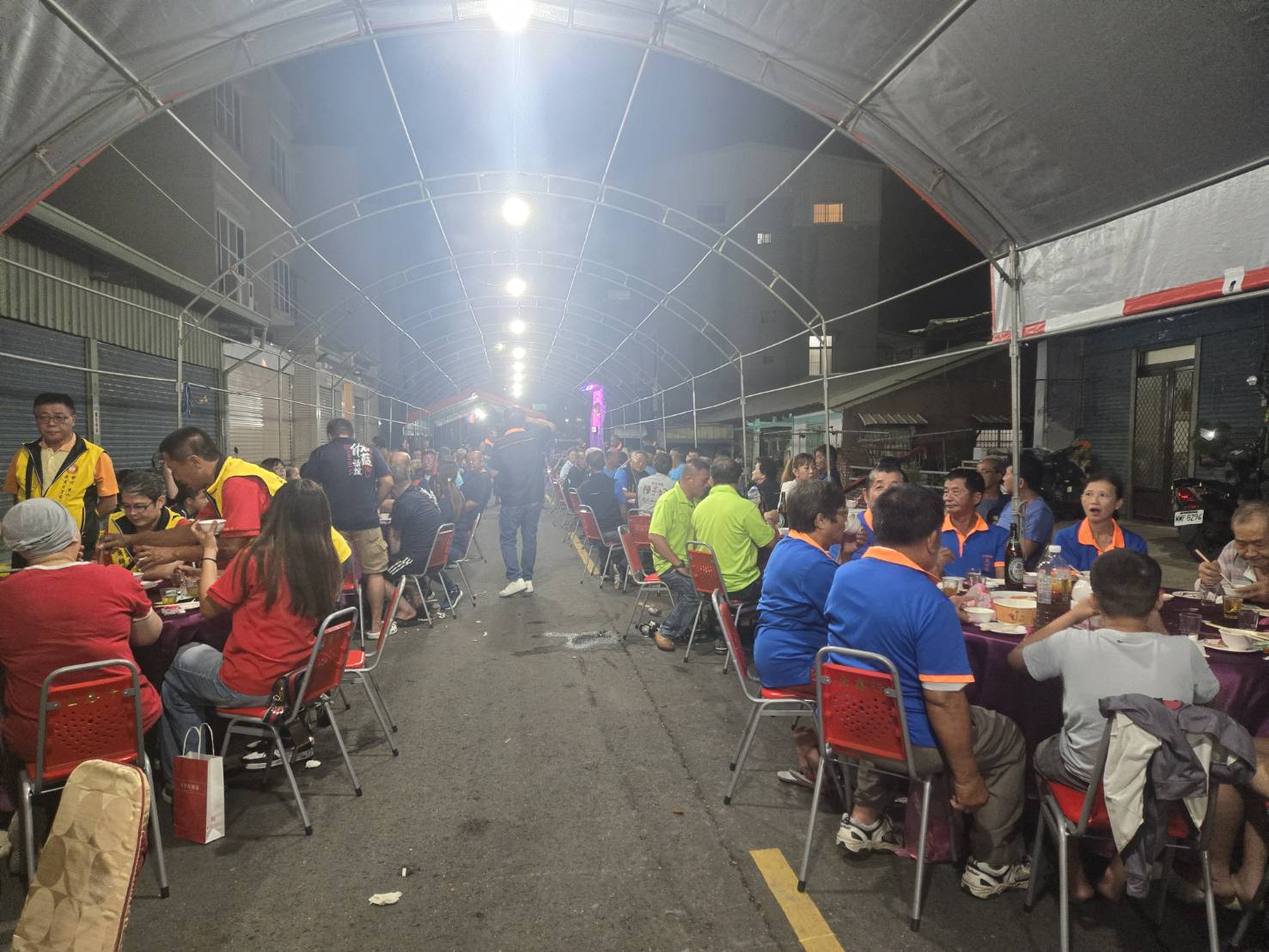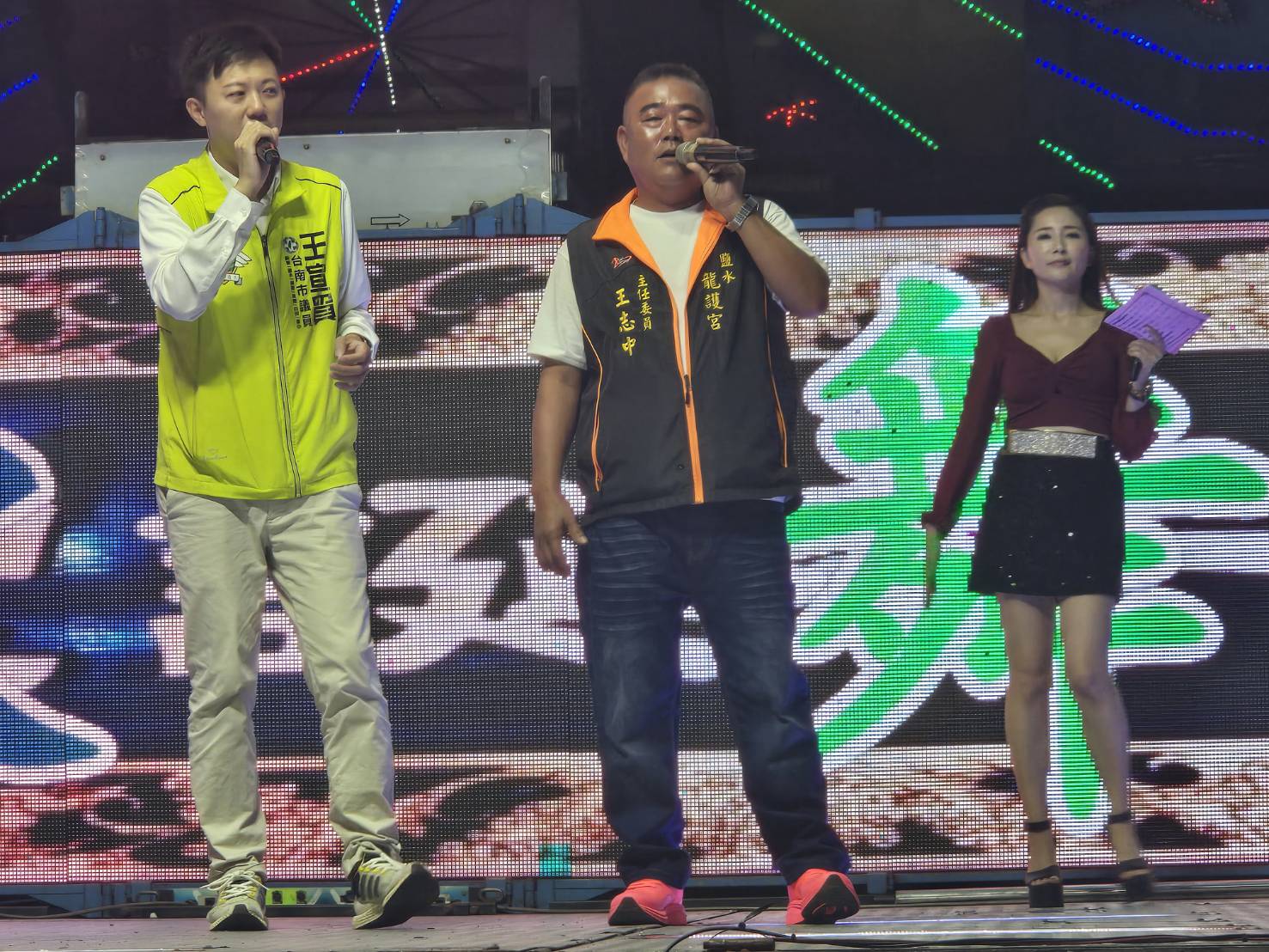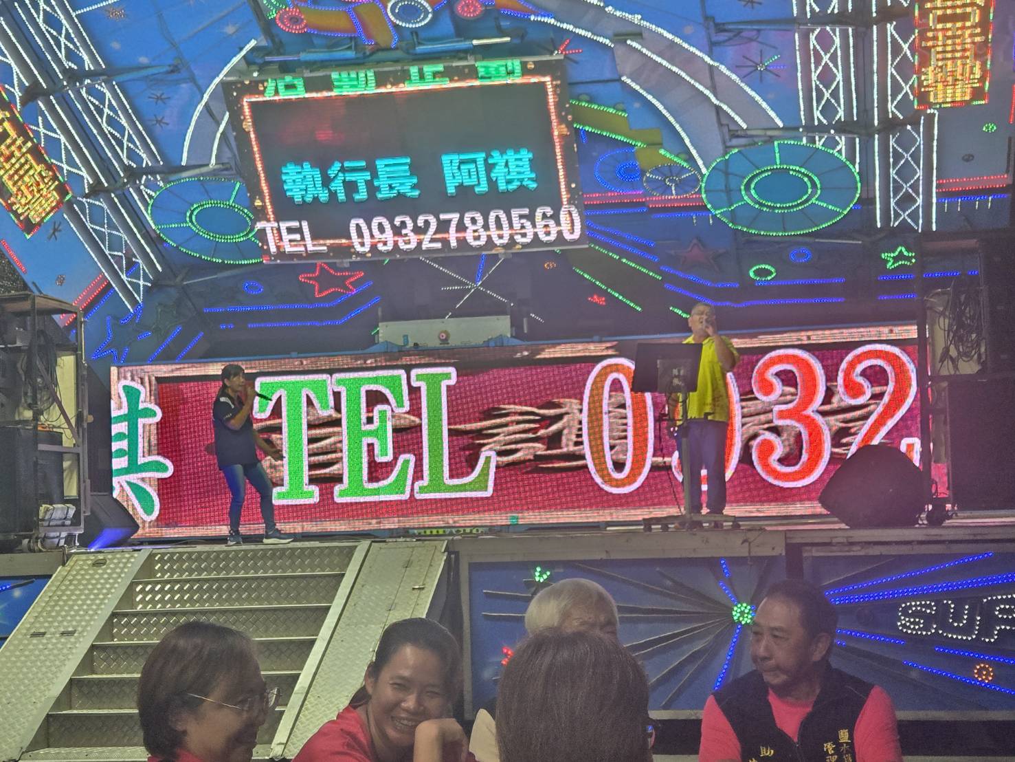 王主委民間好友廟會藝人「白梅」應邀主持餐會活動,詼諧幽默的主持風格逗現場來賓各個笑得合不攏嘴,素有晚會新亮點的漂亮寶貝「白雪」女歌手群,率先登場演唱「流水年華、天天年輕」及「阿羅哈、心花開」等4首膾炙人口的國、台經典歌曲,爲晚會開場炒熱氣氛,另主委王志中為增加晚會娛樂效果,特邀鹽水分駐所警友站長顏利吉及伽藍廟女委員劉盈秀上台獻唱「你是我的眼」經典國語歌曲,表現宛如蕭煌奇歌手親臨現場般,讓台下來賓聽得如癡如醉,掌聲不絕於耳,「安可」聲此起彼落。
