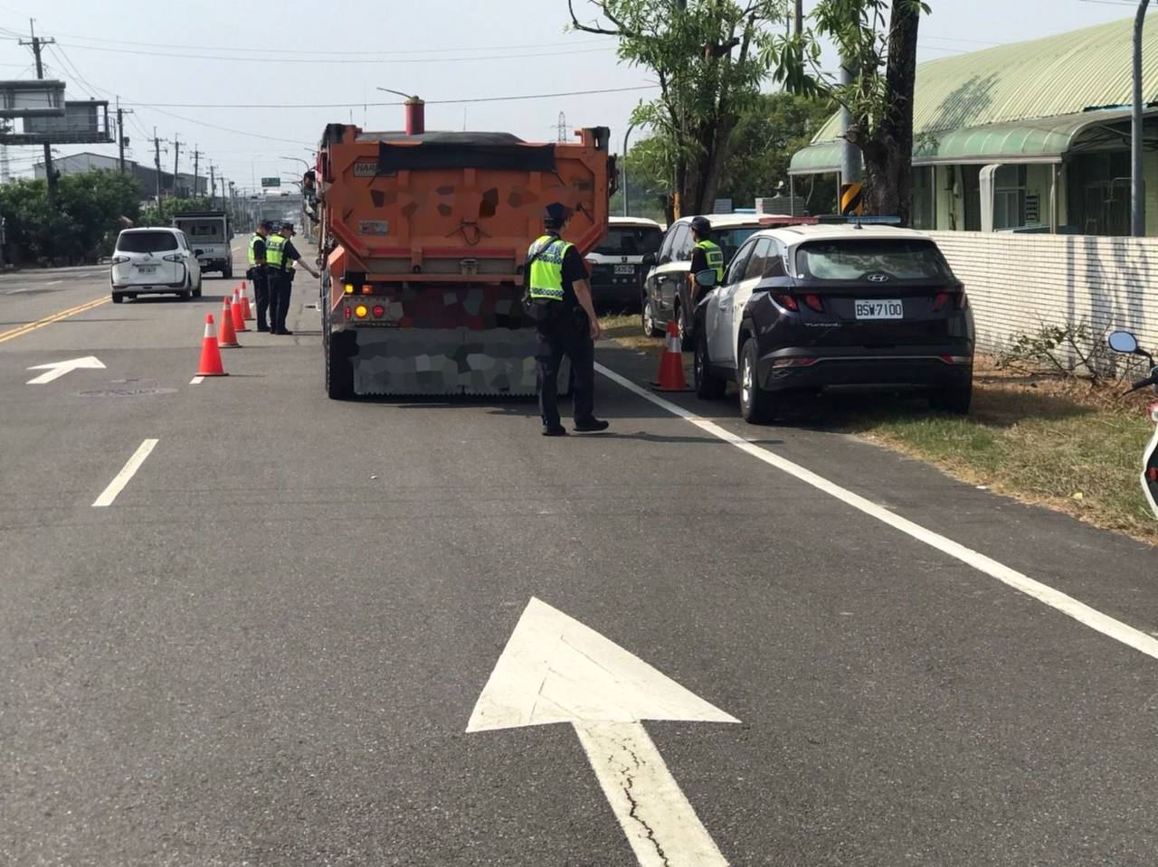 圖:新營警取締大型車違規並赴工業區宣導交通安全