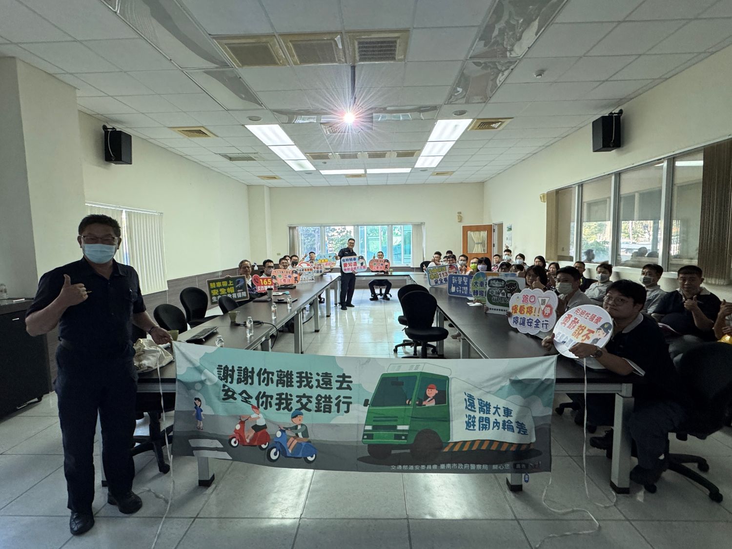 新營警分局表示,為提升駕駛人與民眾交通安全意識,以執法取締及宣導併行,新營警分局也前往柳營工業區「精鋼精密科技股份有限公司」及轄區大型車企業或車行舉辦交通安全宣導講座,由交通組組長向公司員工講解大型車內輪差、視野死角及轉彎安全注意事項,提醒駕駛「車輛慢、看、停,行人安全行」,避免事故發生,新營警分局特地準備精美小禮物