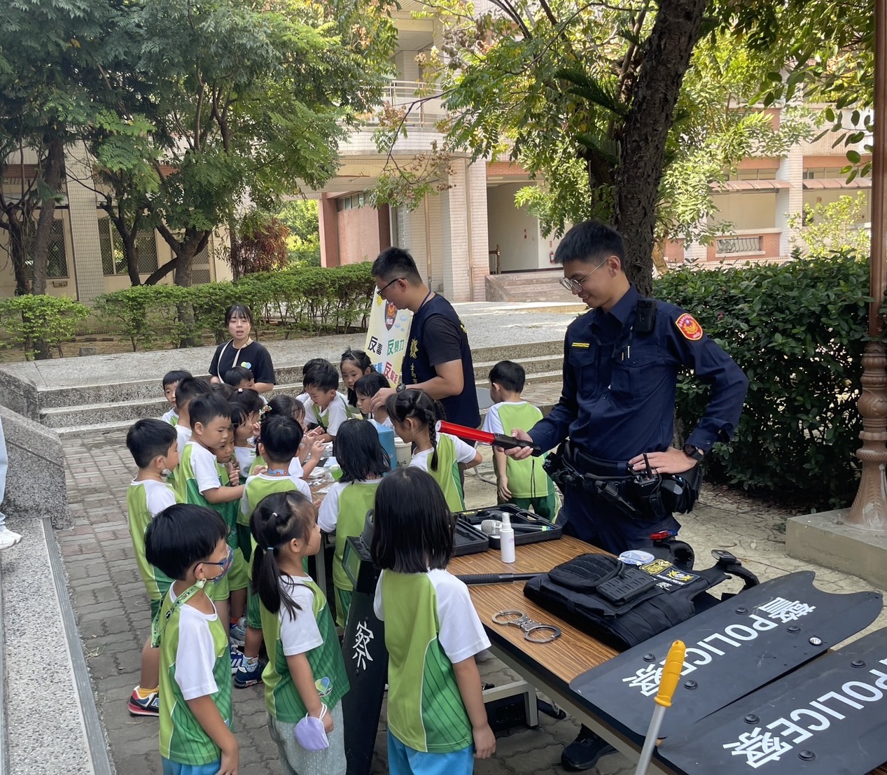 除了交通安全教育,活動亦融入「反詐騙」與「反毒」宣導課程,員警以活潑生動的互動問答方式,結合偽裝毒品如「毒糖果」的展示,幫助幼童了解生活中可能遇到的危險情境,學習如何辨識、拒絕並遠離可疑誘惑,培養正確的是非觀與自我保護意識,從小扎根法治教育觀念。