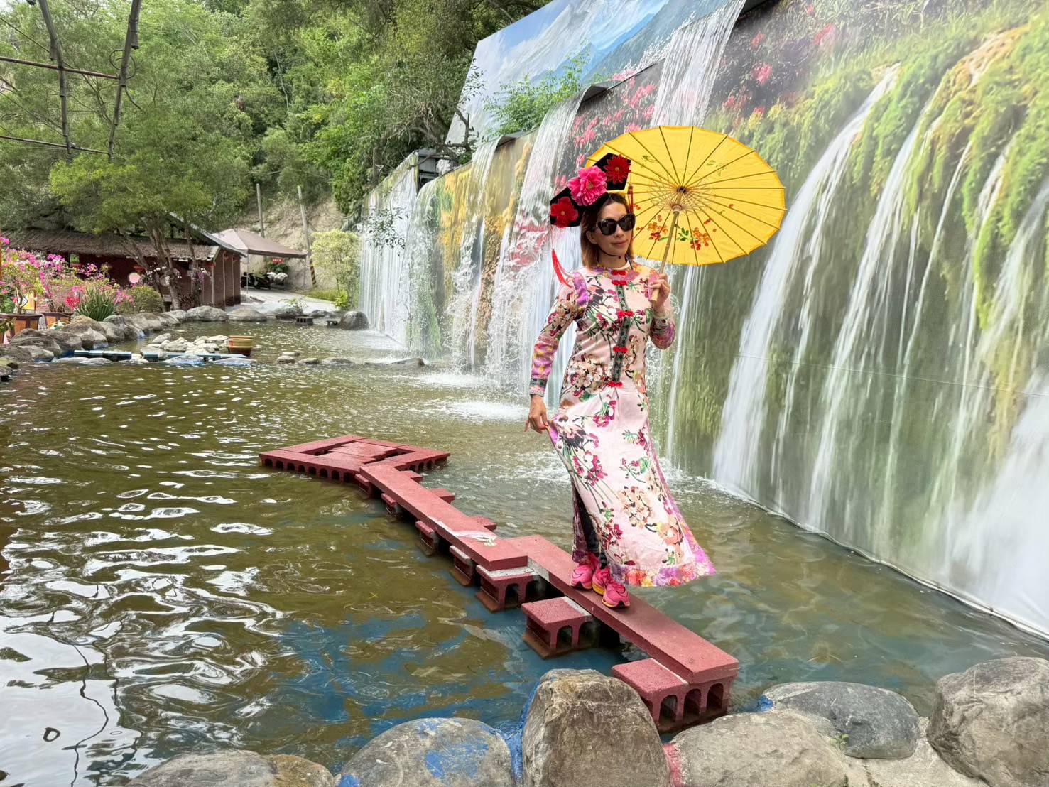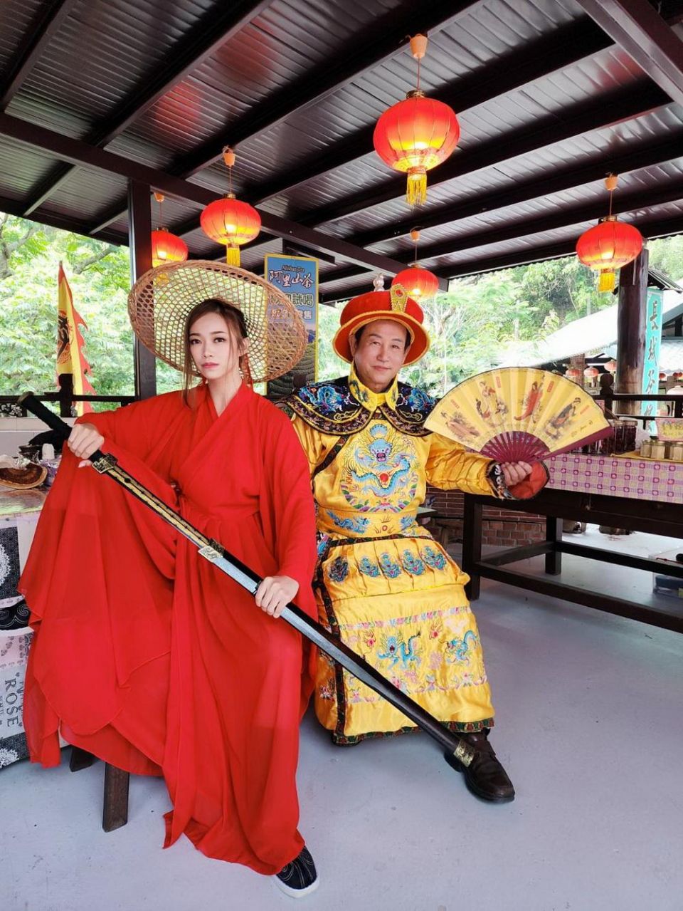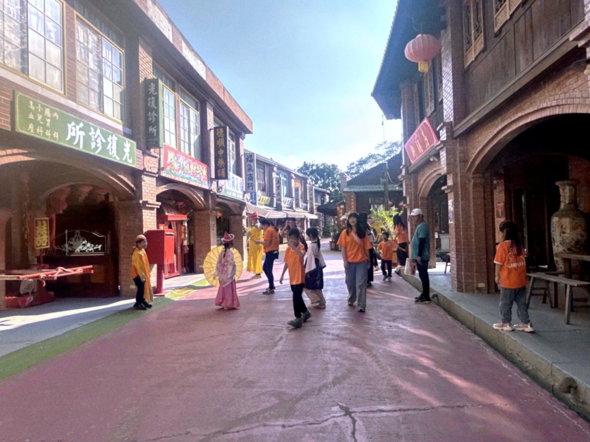 除了健行,園區入口的「復古電影老街」近日更成社群打卡焦點。街區融合開封府、龍門客棧、江山樓等經典場景,遊客還能租借格格、俠客或皇帝古裝拍照,穿梭在仿古建築間,宛如走入古裝劇場景,吸引許多家庭與情侶前來拍出「穿越感」美照。