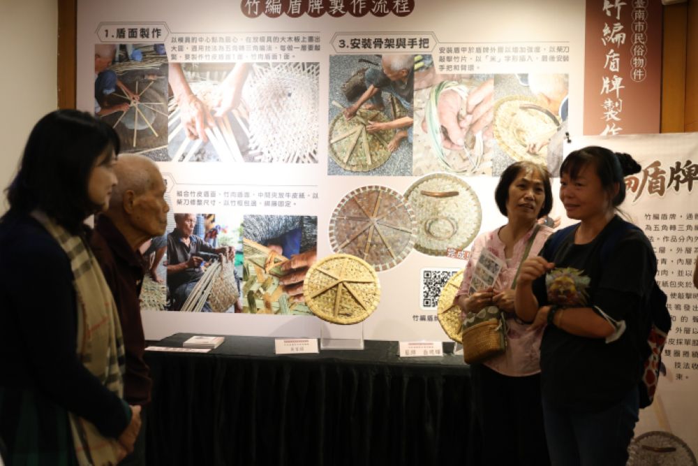 【記者華民鳳/台南報導】台南市文化局文化資產管理處今(6)日於學甲慈濟宮舉辦「臺南市民俗物件製作傳習計畫成果展示分享會」,並在葉王交趾陶文物館同步展出今年傳習課程的師生成果。展品包括竹編盾牌、草鞋與獅頭等多項民俗物件,讓民眾在欣賞葉王交趾陶工藝之美的同時,也能近距離感受民俗陣頭物件兼具力與美的文化風貌。