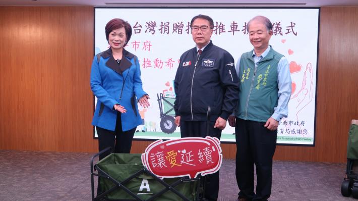 市長黃偉哲表示,偏遠及非山非市學校在辦理運動會、社團成果展及日常物資搬運時,常面臨人力與設備不足,此次捐贈的高承載越野推車能適應不同地形,對學校提供即時又實用的支援,不僅減輕老師負擔,更能提升學生參與活動的安全性。