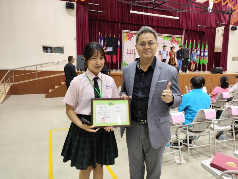 屏北高中莊芯瑜同學獲優秀青年表揚全校與有榮焉