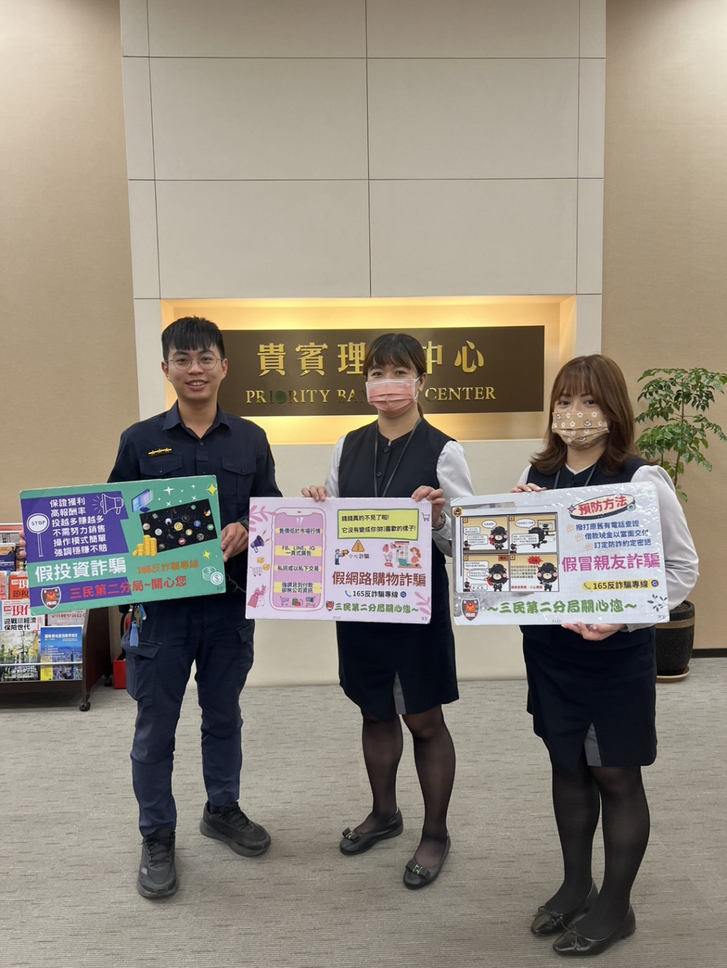 近期因詐騙手法層出不窮,常見類型包括「假投資」、「假冒客服」、「解除分期付款」、「網路購物詐騙」及「假檢警」等。由於行員長期接觸民眾金流,為攔阻詐騙的重要關鍵,因此本分局主動至銀行進行實地宣導,協助行員掌握最新詐騙態樣。宣導過程中,員警分享近期詐騙話術與成功攔阻案例,提醒行員如發現客戶有大額或異常交易、神情緊張,或提及「裝潢款」、「購買黃金」、「投資股票」、「客服指示操作」等關鍵字時,可主動關懷並即時通報警方到場協助。
