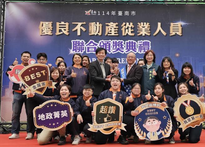 南市114年優良不動產從業人員聯合頒獎典禮表揚12位優良從業人員