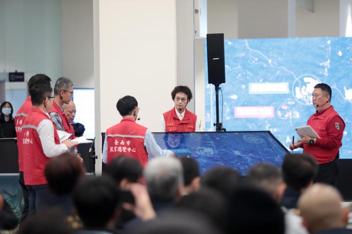 副總統蕭美琴致詞表示,人與科技的結合,將使我們的城市更有韌性,非常高興見證市府結合民間科技帶動產官學研各方面力量,以創新科技投入各式極富挑戰性的防災任務。台南市府團隊近年積極跟中央合作,推動全社會的防衛韌性演練