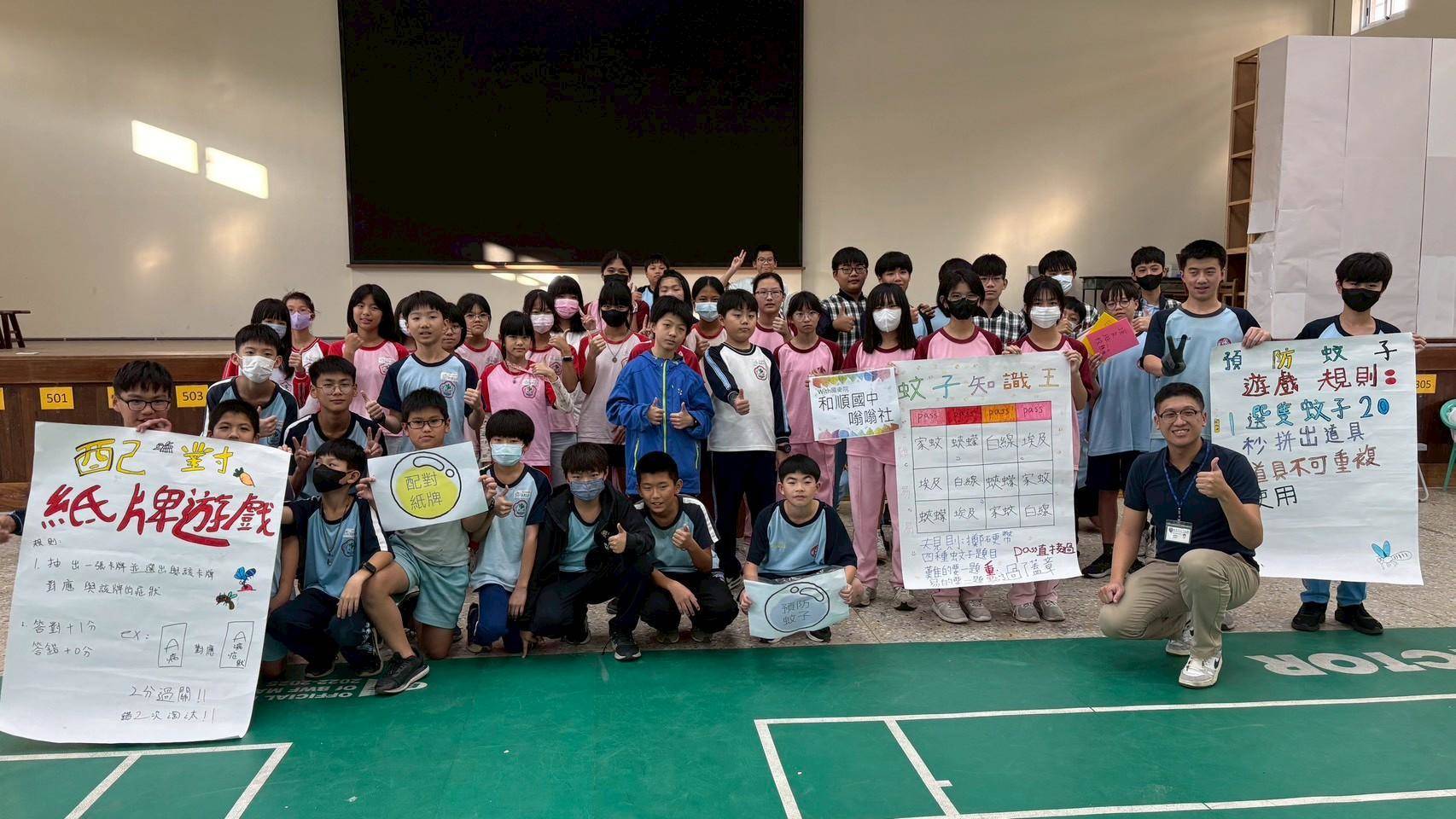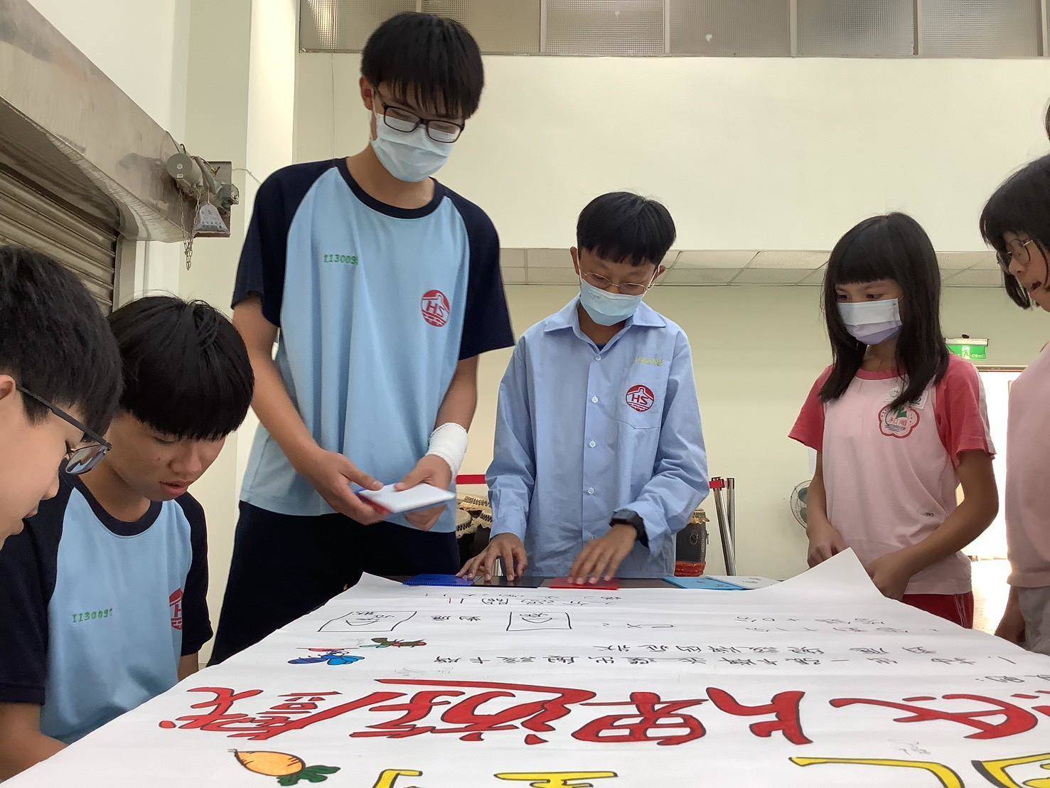 【記者黃石泉/台南報導】台南市和順國中嗡嗡社同學到國小做公共衛生宣導,用好玩有趣的方式,大手牽小手讓國小學童印象深刻、願意做登防!