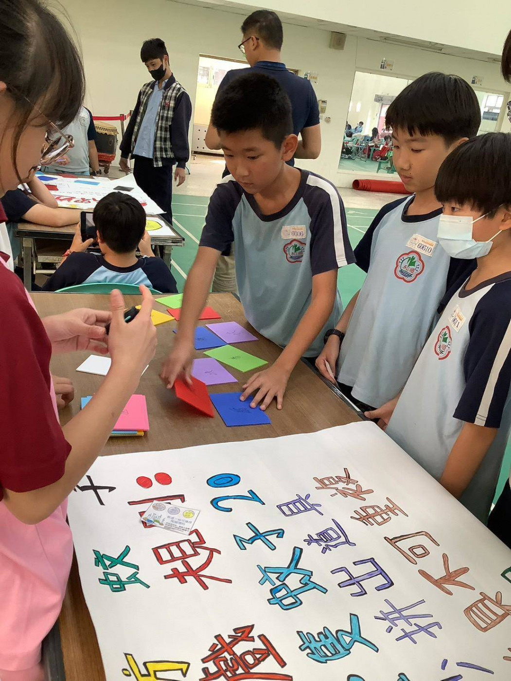 負責帶隊的吳逸鈞老師表示他有發現有一組同學非常細心,將遊戲方式說明都有用注音符號標出來,讓小學生能夠了解一些比較難的字,更能能夠迅速地吸收要做宣導的內容。而這樣的良好同儕學習就是我們想要在嗡嗡社課程中所要展現出來的。