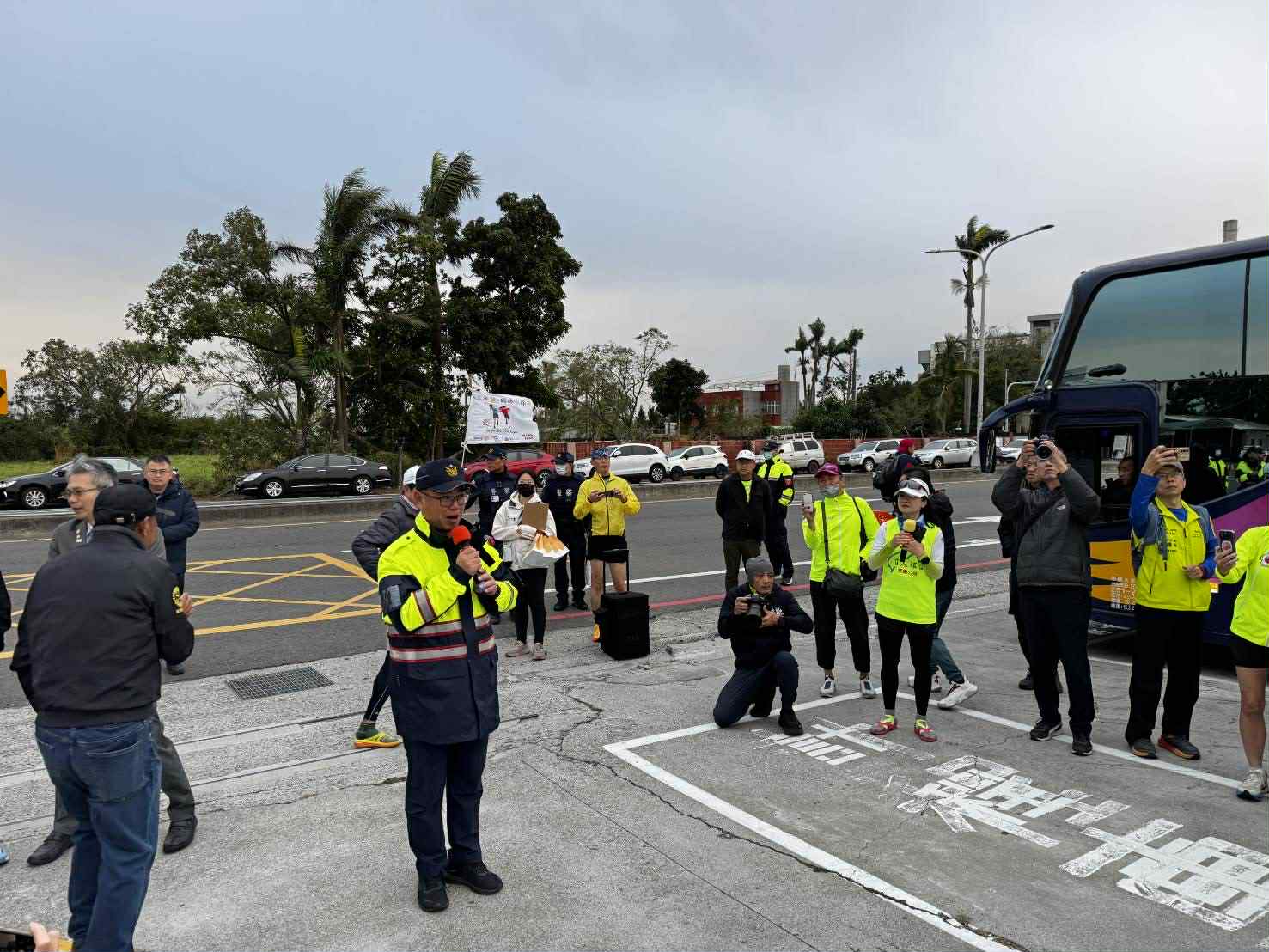 活動起跑前,新營警分局長陳俊凱特別把握人潮聚集時機,向現場民眾及用路人進行交通安全宣導。分局長表示,清晨時段光線不足、車流漸增,呼籲用路人務必落實車輛「慢、看、停」的行車觀念,行經路口及人多路段時減速慢行、注意周遭行人動向,確保行車安全。同時也提醒行人遵守交通規則,過馬路時注意來車,落實「行人安全行」的觀念,尤其視障朋友更需要友善、安全的用路環境。
