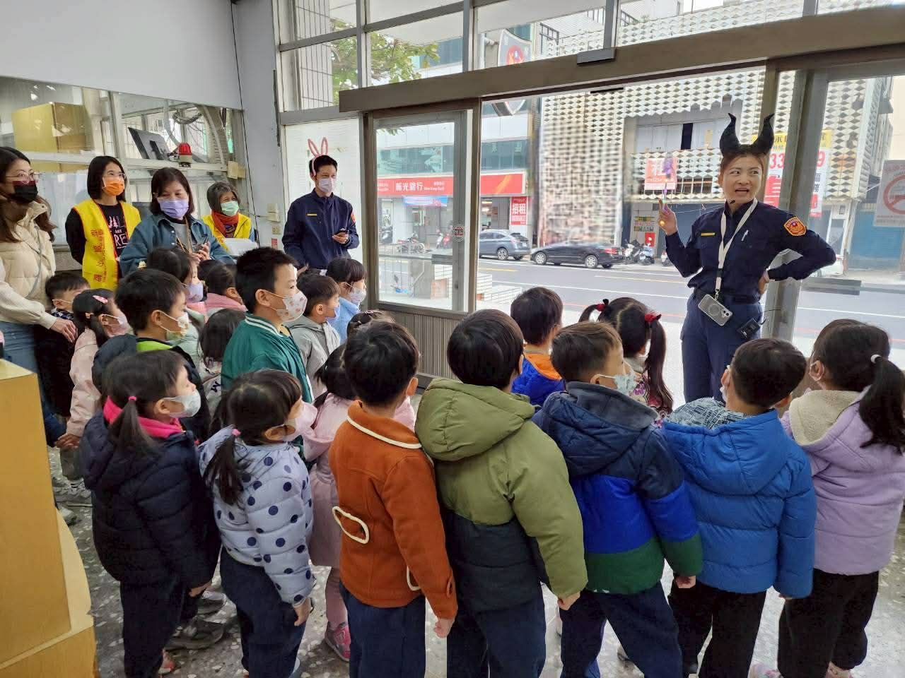 新營區私立立上幼兒園於1月9日至新營警察分局進行參訪活動,分局規劃先帶領幼生通過時光隧道的地下停車場通道進入分局駐地,幼生走出通道後即看到化身為魔女、兔兔及熊熊警察造型的員警,為幼兒介紹巡邏車與一般民車的差異,及認識在路上聽到警鳴聲代表員警在執行緊急任務應優先禮讓等觀念,幼生過程中還不忘糾正長角的魔女警察騎巡邏機車要記得戴安全帽,可愛互動讓員警與老師都覺得此次參訪很開心值得。