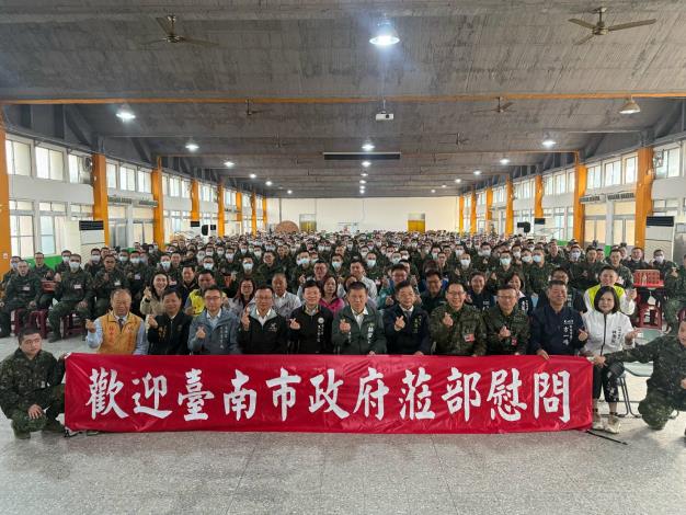 市長黃偉哲表示,服兵役是青年人生中重要的歷程,尤其春節期間仍須堅守崗位的官兵更顯辛勞。部隊訓練雖然嚴謹,卻能培養責任感、紀律與團隊合作精神,期勉役男把握服役期間的學習與成長機會,服從指揮、遵守紀律,珍惜同袍情誼;同時也提醒役男在完成訓練與任務之餘,適時與家人聯繫,讓家人安心,共度溫馨佳節。活動中,姜副市長代表市府致贈慰勞金及臺南在地農特產品,並逐一慰勉官兵,另分送餐點與飲料為官兵加油打氣。部隊亦回贈感謝狀,感謝市府長期以來的關懷與支援,現場氣氛溫馨熱絡。