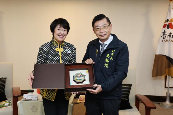 姜淋煌副市長代表黃偉哲市長感謝大阪市議會大力支持與台南的交流,在2024年台日交流高峰會時遠道而來,也在台南遭遇天災時予以支持,包括2016年台南地震時辻淳子會長的援助,以及去年丹娜絲颱風後陳天隆顧問發起募款援助台南,也期許台南與大阪間長期且堅韌的互助情誼能持續延續下去。