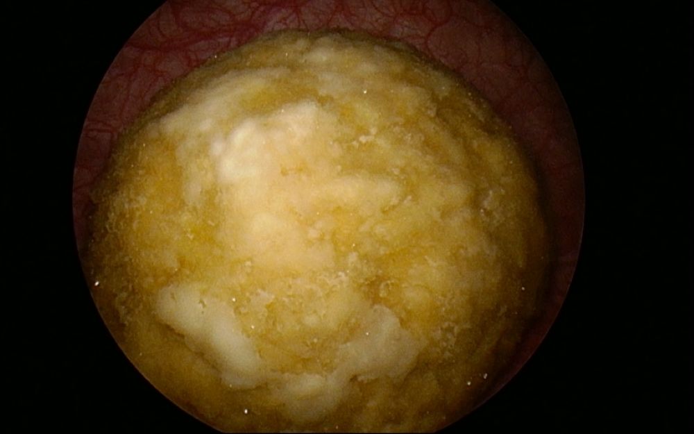 泌尿科主任陳建升醫師於診間使用超音波掃描膀胱時,赫然發現膀胱有一顆2.5公分大的結石,於是安排病患住院接受內視鏡手術,手術順利將結石擊碎並取出。陳建升醫師擔心病患是不是有排尿功能的障礙,於病患回診時,進一步安排尿路動力學檢查,結果顯示一切正常。推測病患膀胱結石的原因可能還是與飲水量不足有關。病患順利出院後,就再也沒有解尿時的不適感了。