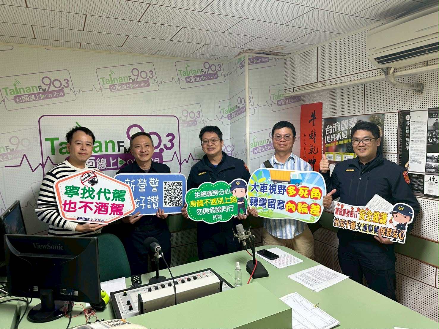 【記者田進山/台南報導】新營警分局為宣導115年春節期間交通疏導措施及交通安全宣導,於9日由該分局宣導團隊至轄區「建國電臺」、「臺南線上電臺」錄製春節節目專訪,希望透過線上廣播,呼籲鄉親朋友們共同關心春節期間的交通安全及警方守護交通順暢不打烊決心。節目內容有「2026月津港燈節活動」、「2026鹽水蜂炮活動」、「春節期間國道匝道封閉以及高乘載管制措施」及「酒後找代駕」等議題,將在春節期間與聽眾分享。