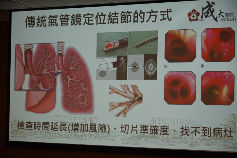 成大醫院胸腔內科郭鈞瑋醫師表示,精確的診斷是提供有效治療的關鍵第一步,過去在肺癌診斷面臨許多挑戰。傳統氣管鏡檢查受限於設備的能力,難以精確到達肺部外圍或對較小的病灶進行定位,醫師必須對可能有病灶的支氣管,逐一進行繁複的內視鏡超音波探查,大大增加切片的難度、延長檢查的時間,也降低診斷的準確性,更影響早期肺癌的診斷率和治療的時機。
