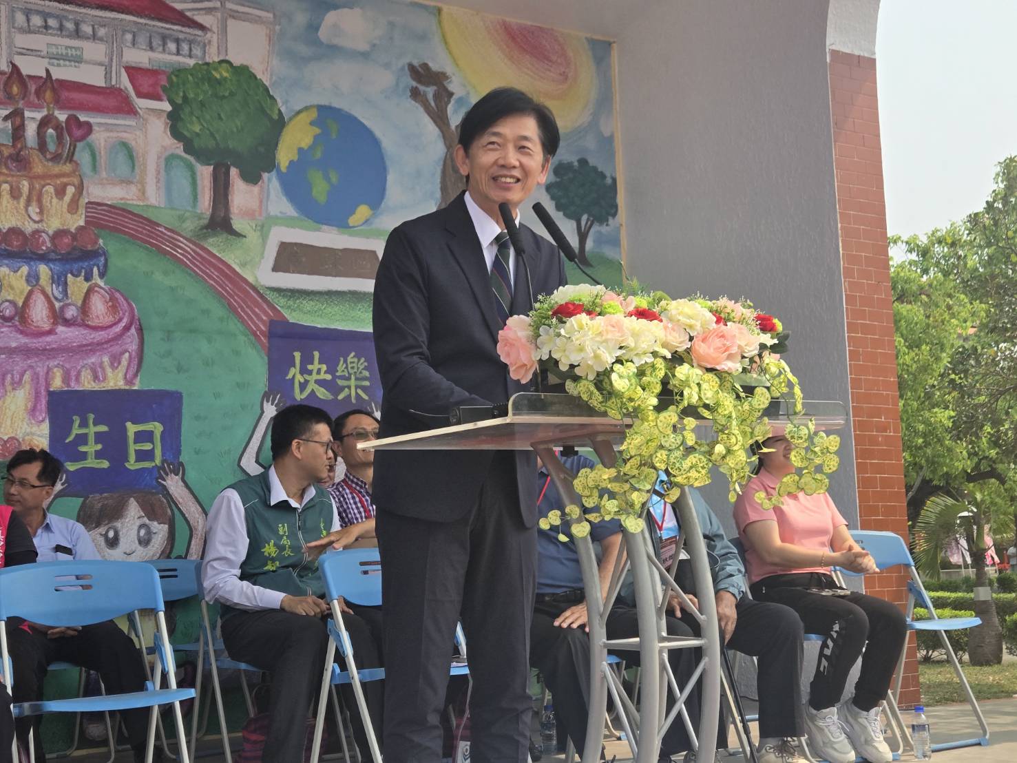 校慶籌備委員會主任委員吳清基致詞表示,黃三和校長接任佳興國小校長以來,辦學積極用心,與學區、社區家長及地方人士互動良好,充分獲得肯定與支持,帶領師生學生編輯繪本「蔗些年」,圖文並茂,娓娓訴說早期佳里興種植甘蔗盛況、甘蔗採收、五分小火車載運甘蔗情形及糖廠製糖過程飄香的蔗香味及追小火車抽甘蔗當零食的趣事,令讀者細細品味想起童年諸多回憶與趣事;另也期勉在校學弟戮力學習,知識可以翻轉人生,本校地靈人傑,古時是天興縣城所在地,110年前為麻豆公學校佳里興分校,首屆學生招收2班共42位學生,借用佳福寺廟室上課,克難興學,學子孜孜不倦,培養出部長、警政署副署長、玉山銀行董事長、高等法院法官、名律師、分局長、學校校長等各界精英,為社會貢獻所長,都是我們學習的對象。